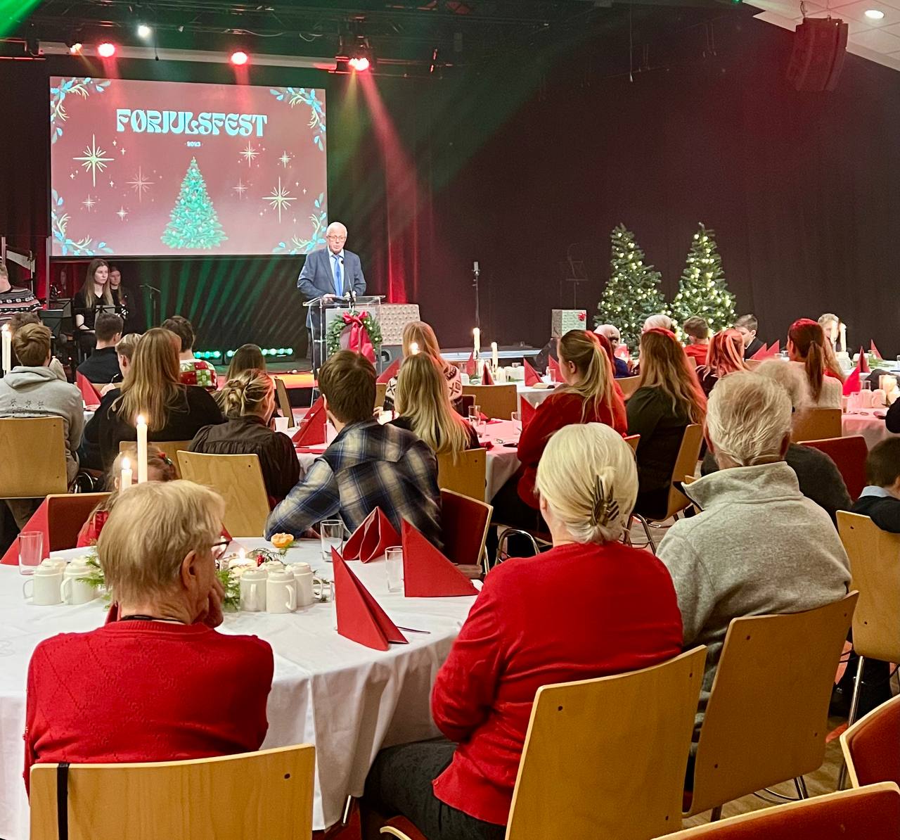 Idet man svinger inn på parkeringsplassen denne søndagen i desember, møtes man av duften av gløgg og pepperkaker – servert fra en hyggelig og julepyntet bod. Inne i salen var det pyntet til fest, og bordene ble straks fylt opp av forventningsfulle store og små.